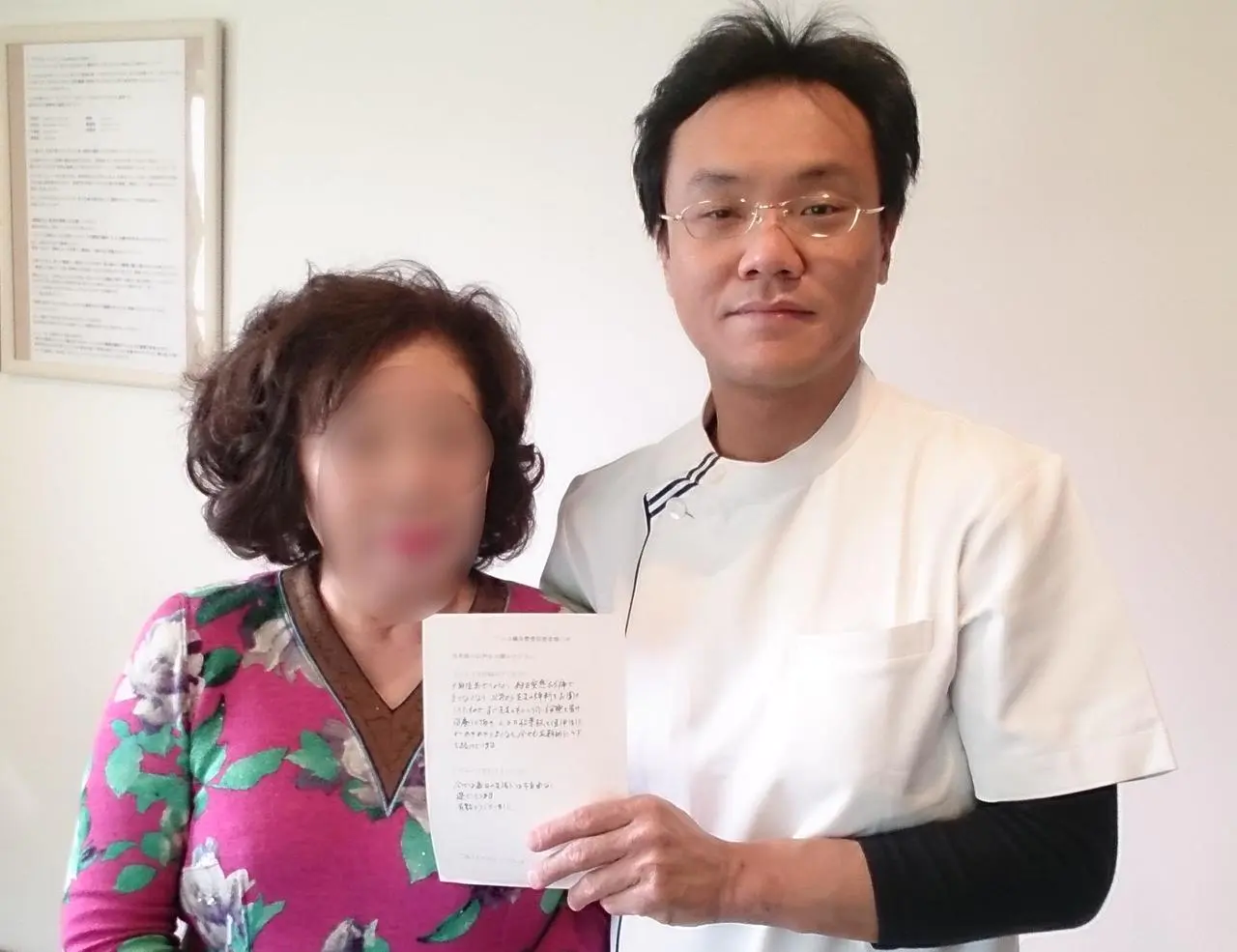 たまたま先生の所の看板に「お話ししましょう」と書いてあるのを見て相談したところ、よくお話を聞いていただいてお任せしようと思いました。