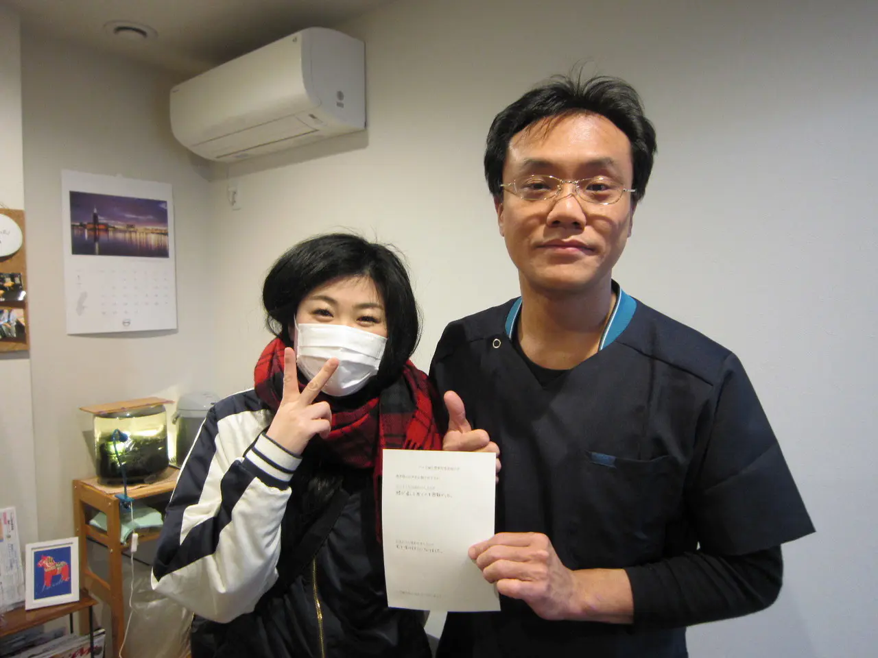 今年に入って新聞広告の中にチラシが配布され、『アユカ鍼灸整体院』を知ることとなる。施術料に脅かせられたが、最後の賭けと思い、ここがだめだったら諦めようと考え足を運んだ。その分、心を込めて治療してくださることだろうと願い、なけなしのお金を叩いた。